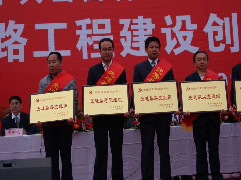 9月29日上午,中共山西省直工委,山西省交通厅在太原举行“重点公路工程建 设创先争优活动表彰大会”。山西省副省长牛仁亮、山西省直工委书记刘传旺,厅领导张润、王志民、郜玉兰等出席大会。长平三标作为长平高速主线段唯一一家单位,也是二公局在晋唯一一家接受表彰的项目,被授予“先进基层党组织”,并作为省厅推荐领奖单位代表上台接受表彰。