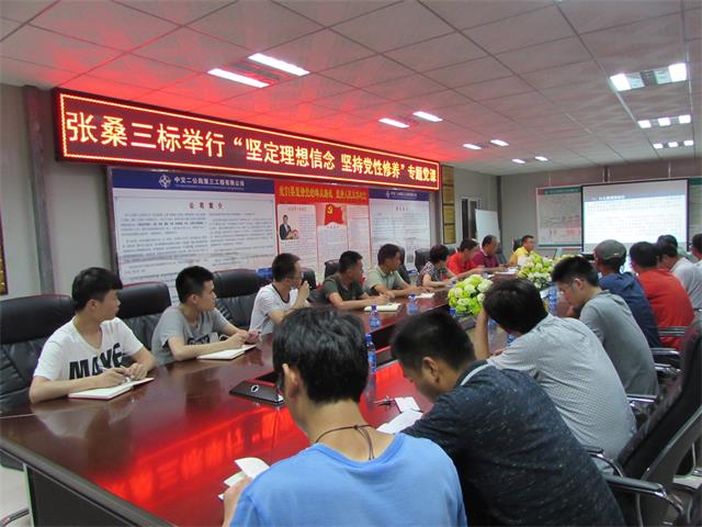 近日,公司张桑三标举办了“坚信理想信念 坚持党性修养”学习教育专题党课暨党支部民主评议党员活动。项目领导班子、全体党员、各部门负责人参加会议。