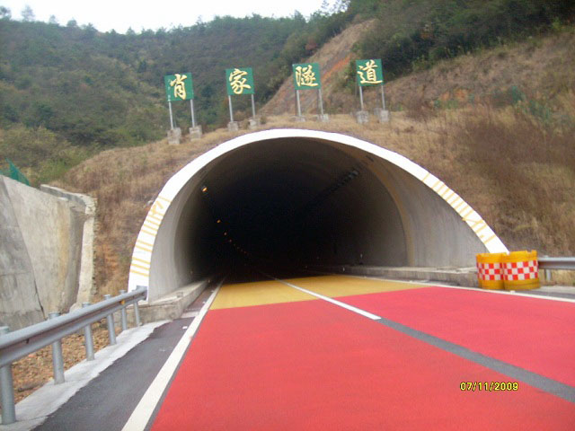 武吉高速公路是江西省“三纵四横”高速公路主骨架网“西纵”的一部分,三公司承建了武吉A9标路基桥隧工程,主要隧道工程为肖家隧道。肖家隧道为左右分离式隧道,左洞长567米,右洞长773米。该隧道于2006 年5月开工,2007年8月完工。