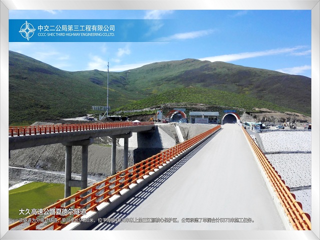 青海大武至久治高速公路是交通部规划的新疆库尔勒经青海通往四川成都的国家西部区域经济大通道中的重要一段,久治三号隧道位于“三江源”自然保护区的核心试验区,海拔4000米以上,隧道全长9430米(左线长4715米,右线长4715米),隧道穿过山体的岩性以三叠系巴颜喀拉山群下亚群砂岩、钙泥质板岩为主,IV级围岩比例达66.7%。三公司承建了5373米(左洞长2635米,右洞长2738米)的施工任务,三次穿越地质破碎带和断层,2013年10月开工, 2017年5月全线贯通。