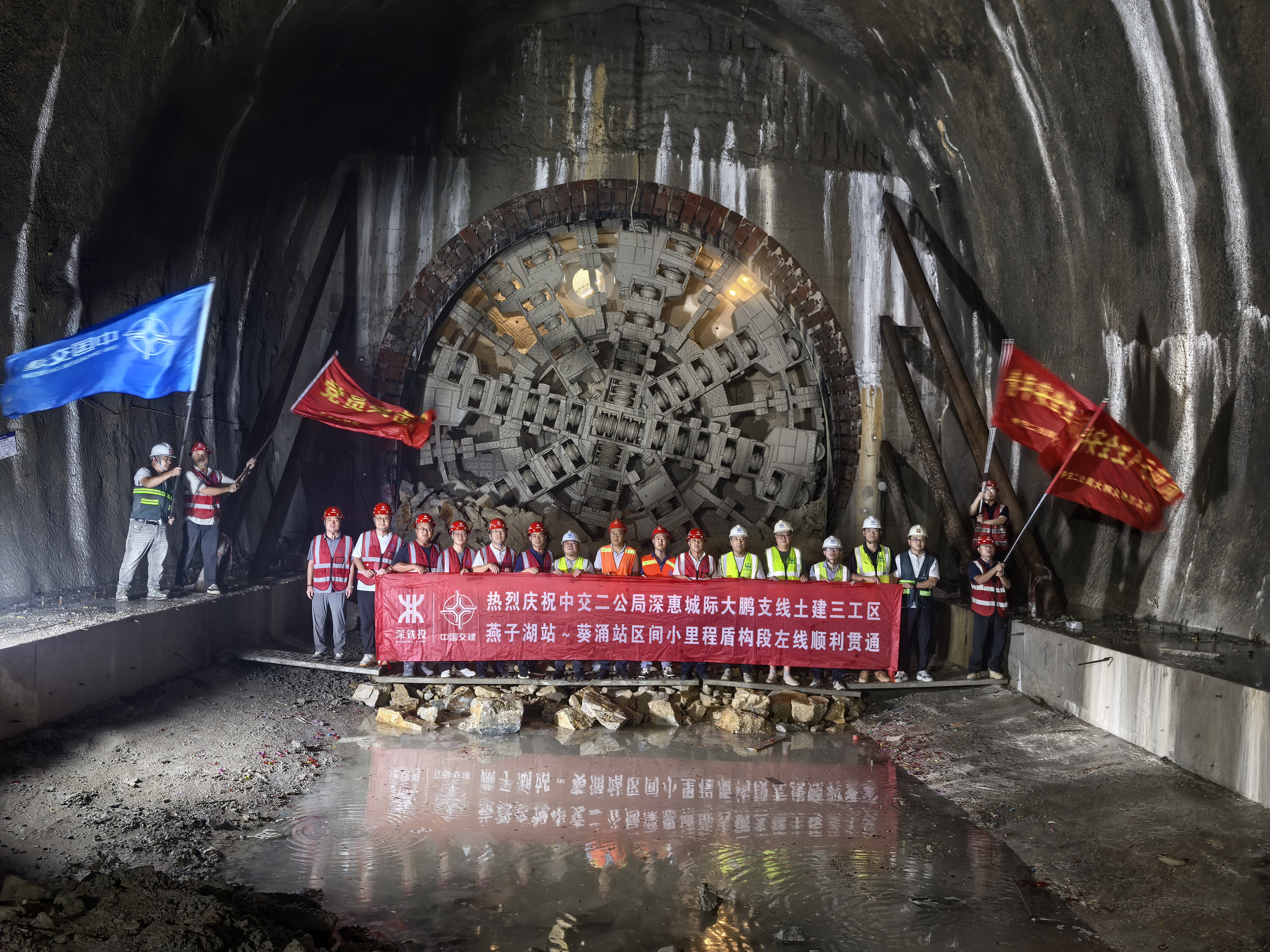 9月28日,深惠城际大鹏支线土建三工区燕子湖站~葵涌站区间小里程盾构段左线顺利贯通,至此项目6台盾构机全部顺利出洞,标志着项目盾构隧道全部贯通。