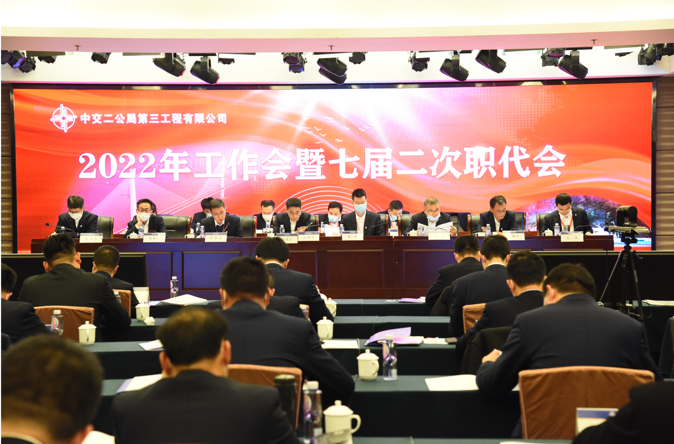 2月21-22日,公司2022年工作会暨七届二次职代会在西安召开。会议以习近平新时代中国特色社会主义思想为指导,深入学习贯彻党的十九届六中全会精神和中央经济工作会议精神,认真落实中央企业负责人会议精神、中交集团暨中国交建第一届一次职代会暨2022年工作会议精神和局2022年工作会暨七届六次职代会精神,总结回顾2021年工作,分析形势任务,找准问题症结,拿出应对举措,安排部署2022年重点工作。局党委常委、纪委书记、监事会主席李刚占,局纪委副书记、纪委办公室主任梁文平,公司领导班子成员出席会议。
